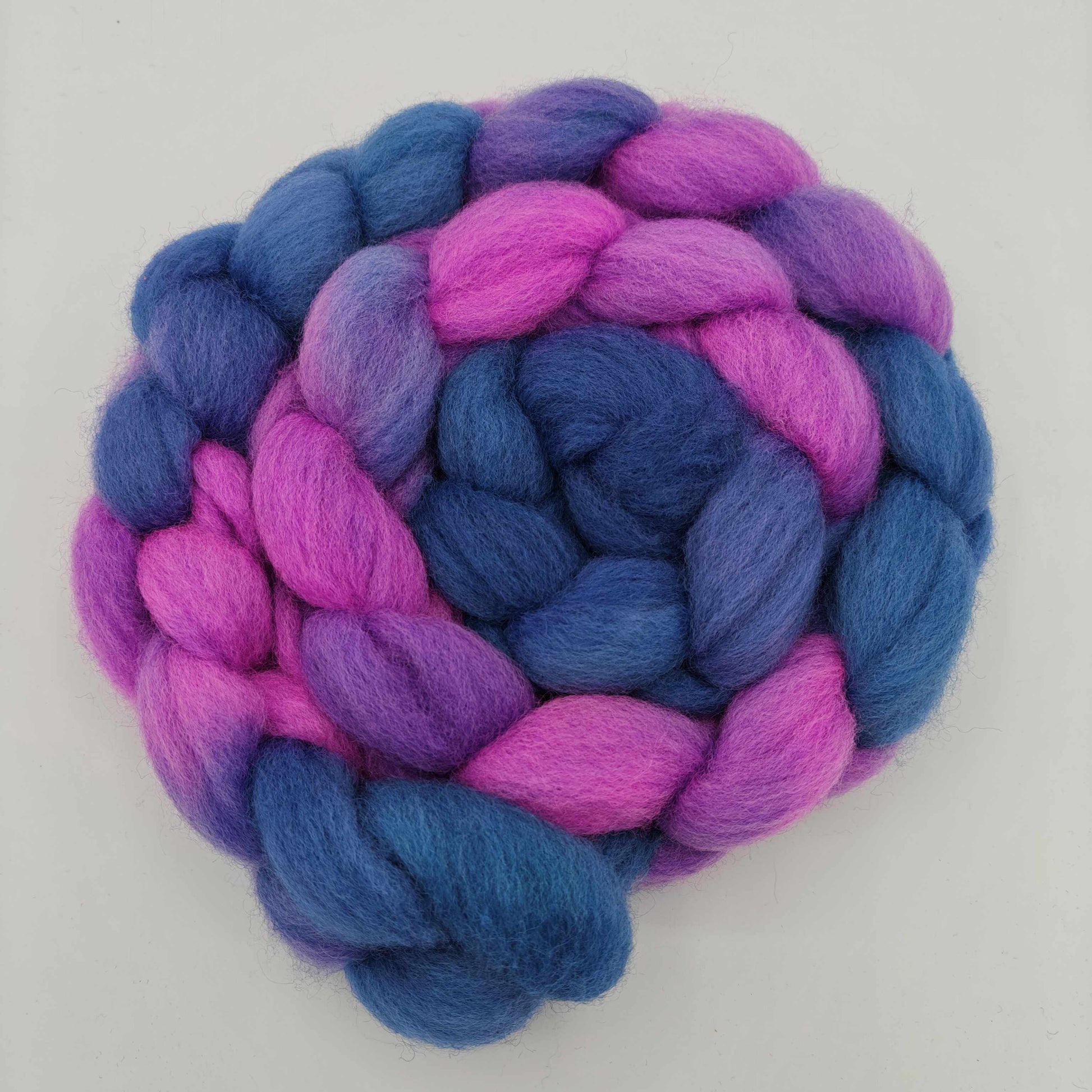 Noin 100g corriedale rotuisen lampaan villaa käsinvärjättynä.