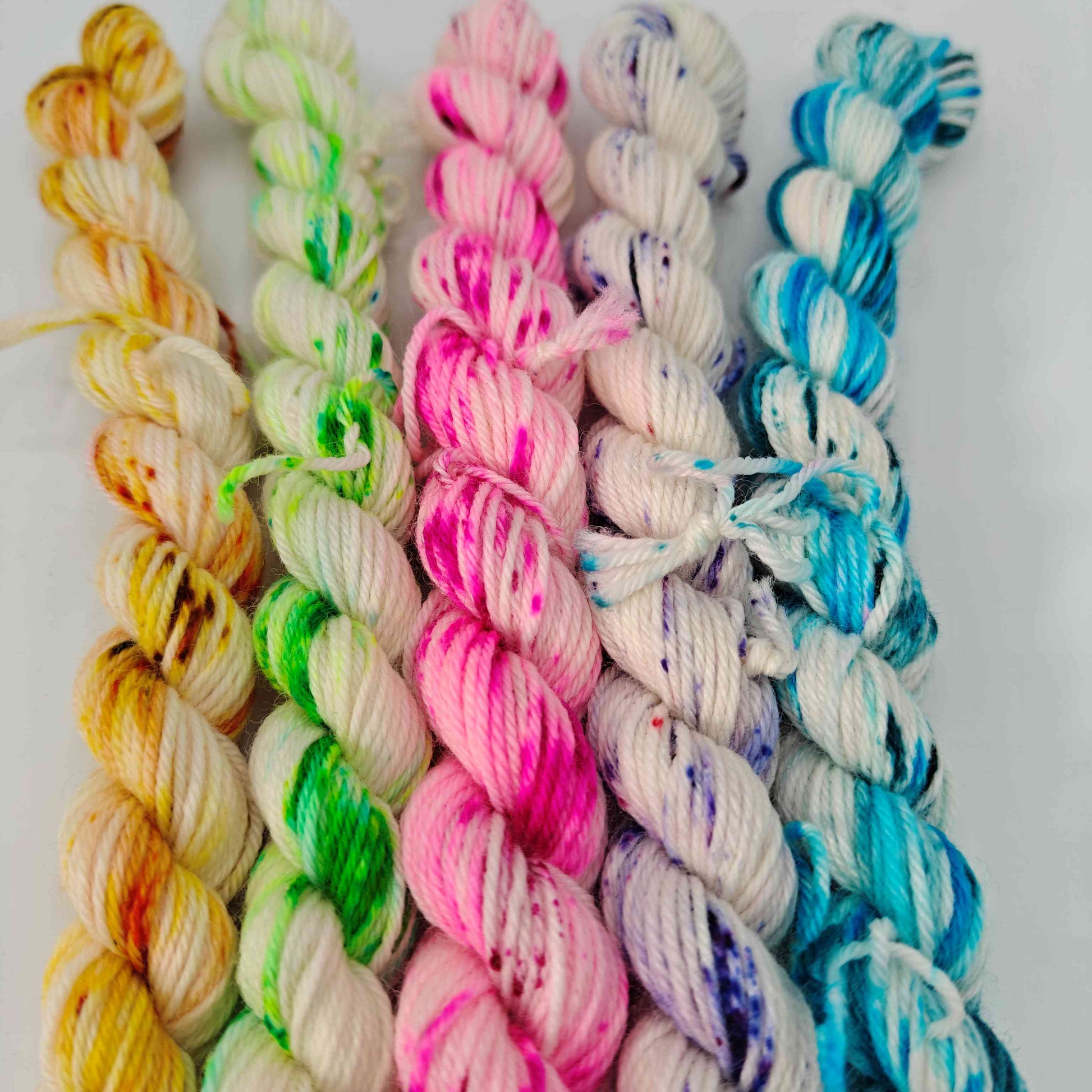 Lankasetti, joka koostuu viidestä 10g pikkuvyyhdistä! Yhteensä siis 50g lankaa.