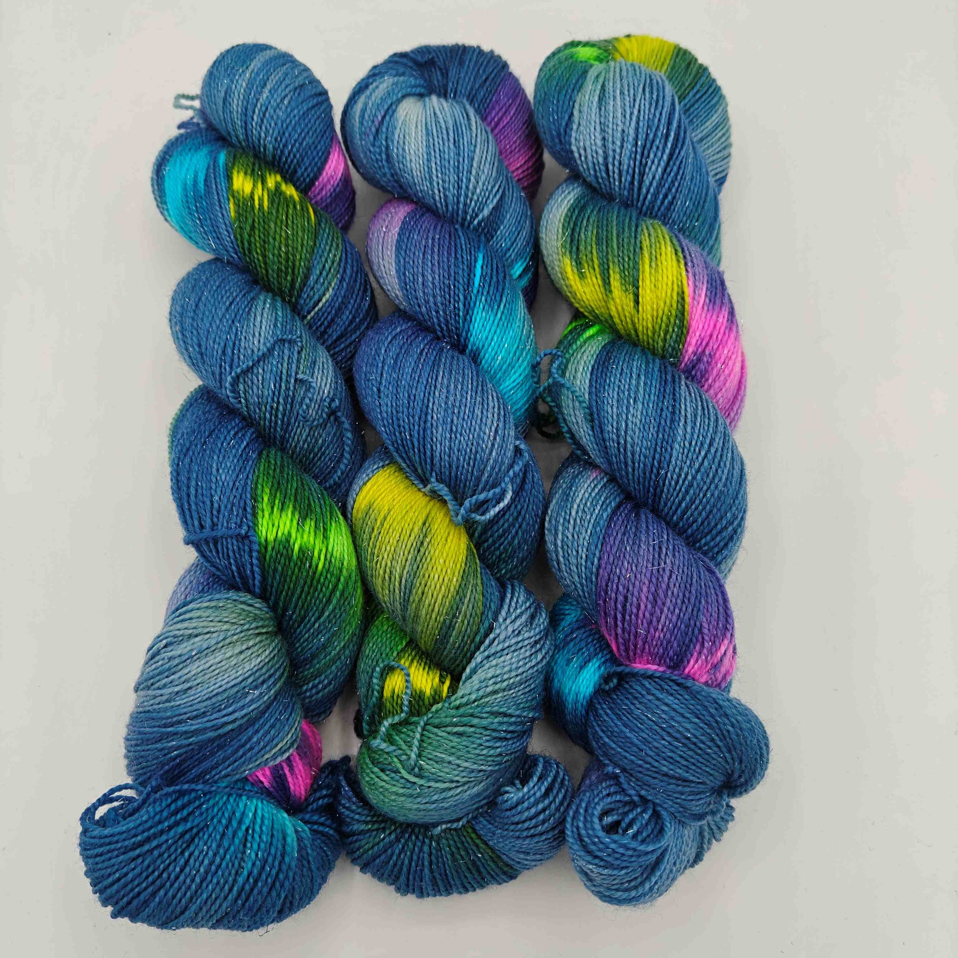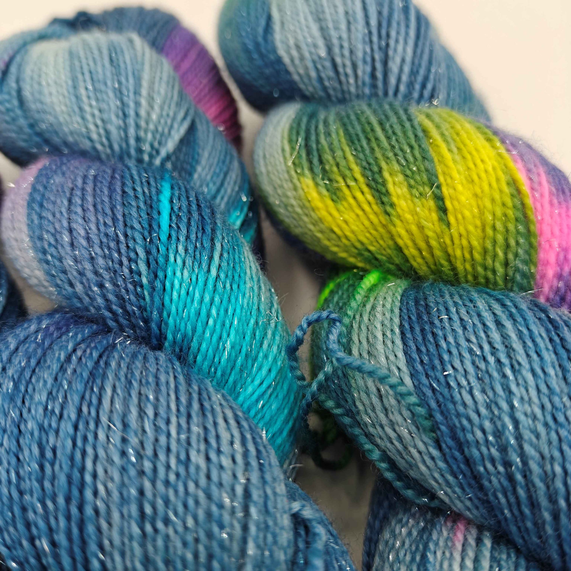Jos olet yksi meistä, joille pieni glitter ja kimalle on aivan vastustamatonta ja lisää ripauksen taikaa ihan joka mahdolliseen paikkaan, niin todennäköisesti ilahdut kuullessasi, että Diskoteekki on nyt saatavilla myös kimaltavana versiona! Diskoteekki koostuu siniharmaasta pohjasta, jonka tummuusaste vaihtelee ja siten tuo neulepintaan lisää elävyyttä. Tämän lisäksi pohjavärin seasta tuikkivat kirkkaat diskovalot pinkin, keltaisen, vihreän ja turkoosin sävyissä.