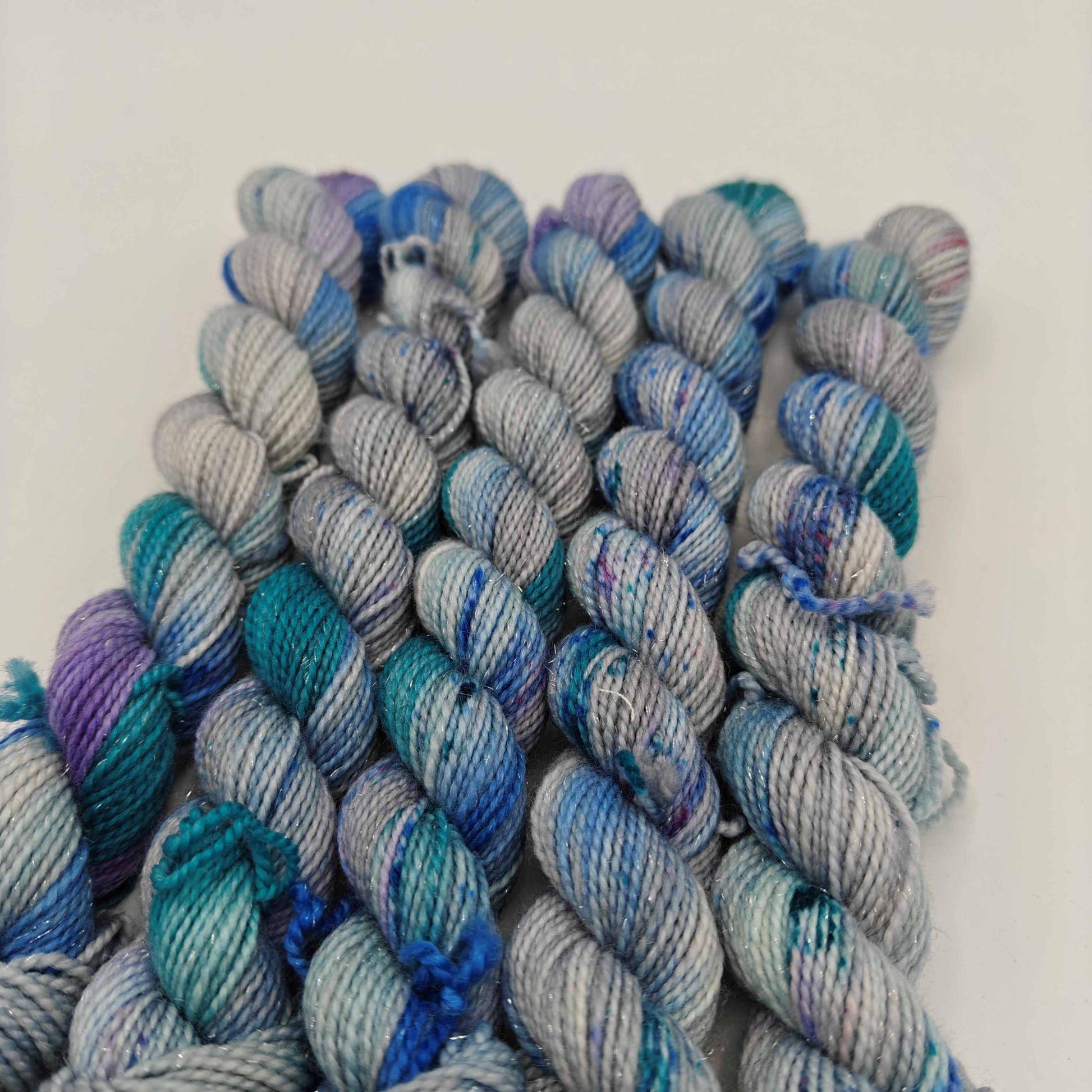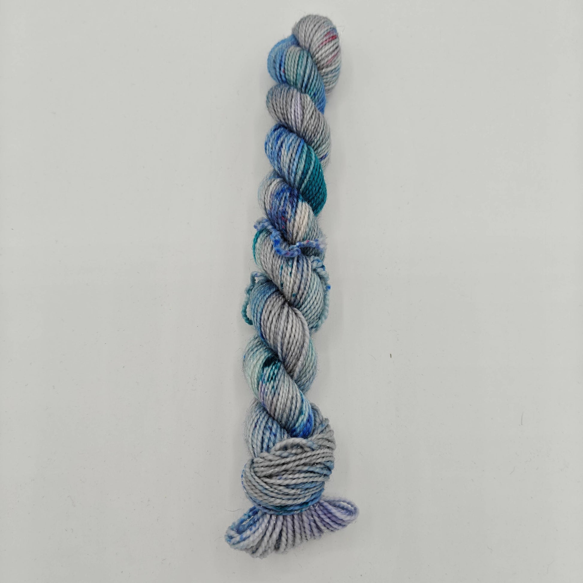 Pikkutaika, eli 20g pikkuvyyhti käsinvärjättyä kimallesukkalankaa! Lankaan on siis kehrätty mukaan stellinaa, joka tuo siihen säihkettä.