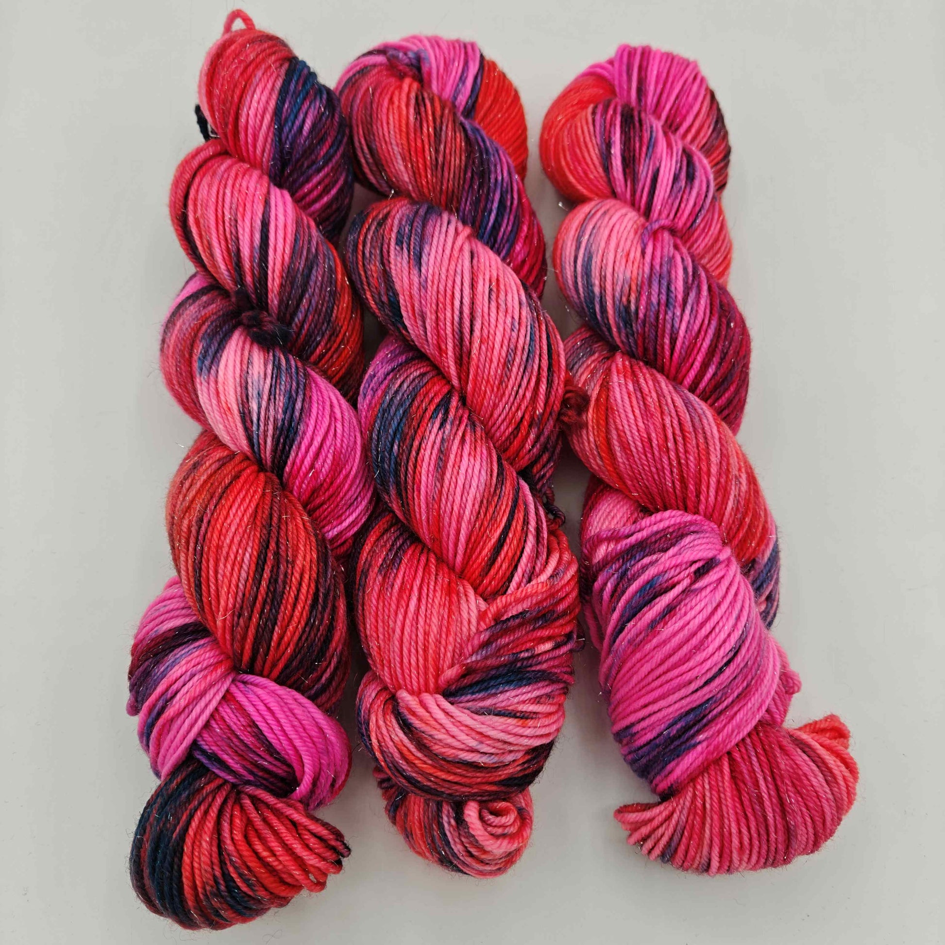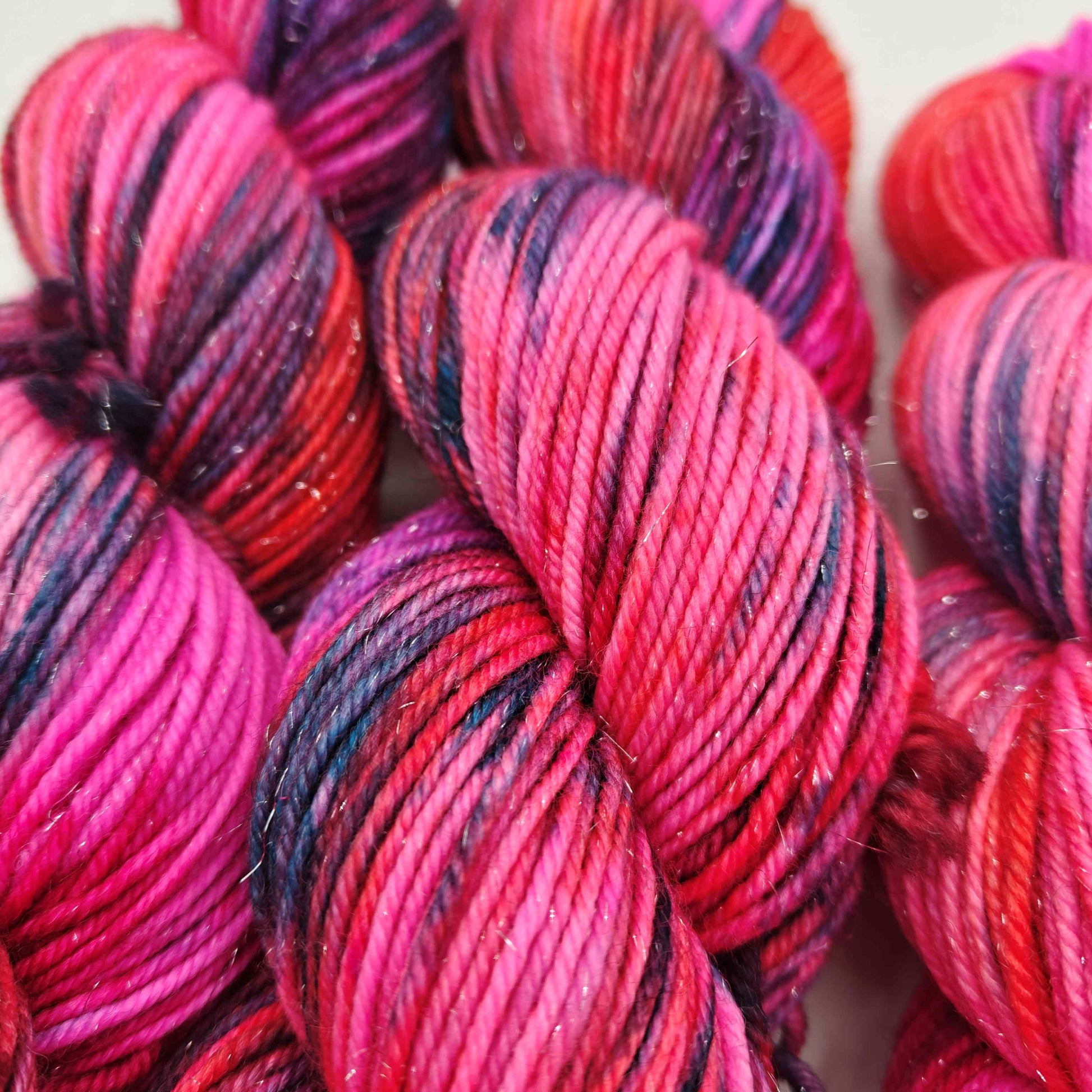 Greippireivit, paksumpi nailonilla vahvistettu käsinvärjätty merinosukkalanka, johon on kehrätty mukaan stellinaa tuomaan kimalletta.